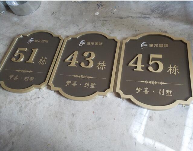 公司专业制作各类标识标牌,产品包含:楼牌 吊牌 导视牌 环境标牌 镂空牌 路牌 标识牌 导向牌 楼牌号 指示牌 导向牌 地产导视,楼栋牌 房地产标牌 不锈钢烤漆牌 图文丝印标牌 楼栋号 高档楼栋号 标识标牌 门头 标牌 广告楼牌 门牌 楼栋牌 标识牌